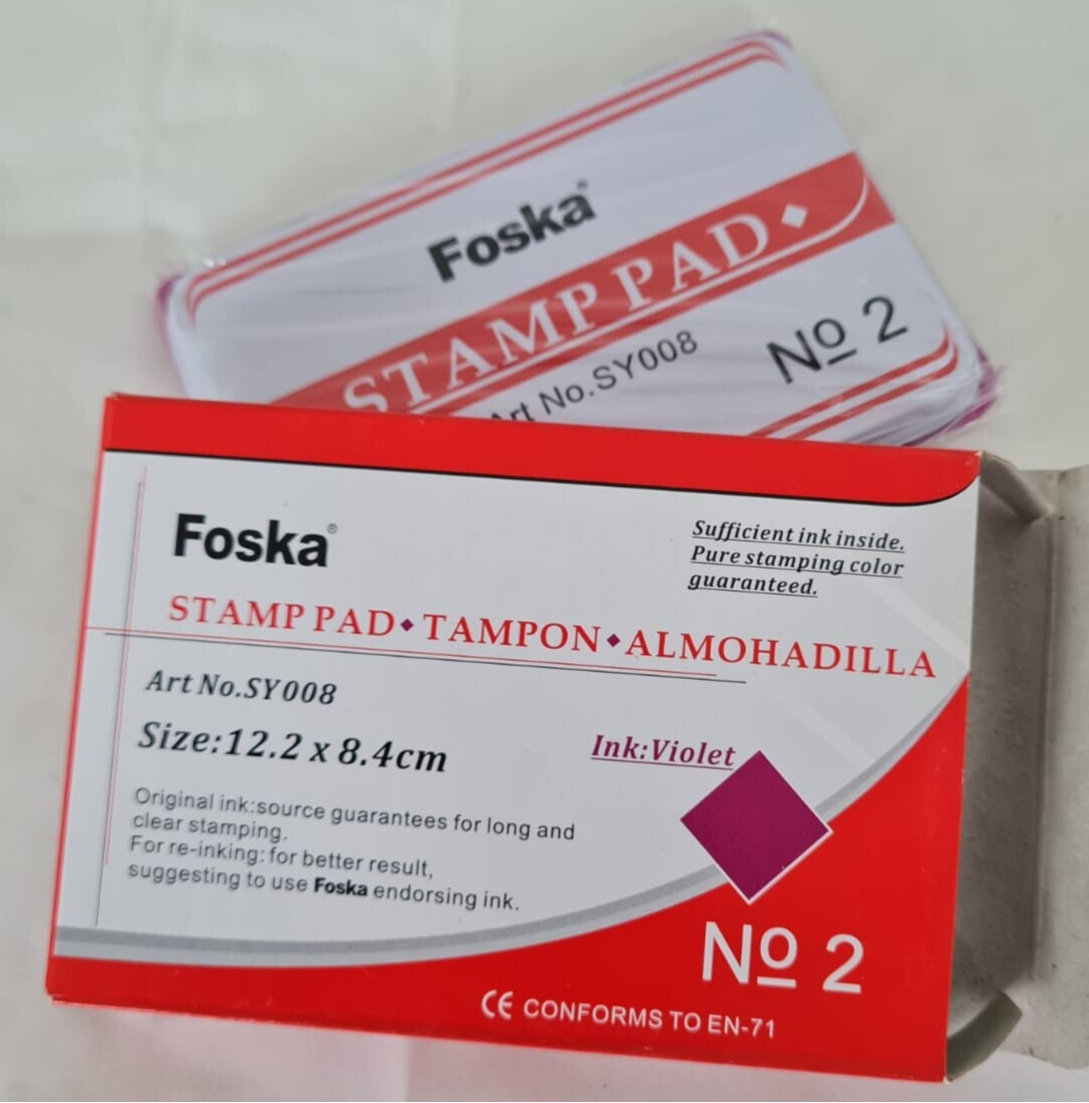 Purple stamp pad, supplied in a metal case. Measures approximately 122mm x 48mm.