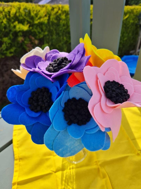These handmade felt flowers make the ideal gift which will last. Bring a touch of colour to any room. Guaranteed to bring a smile to your face. Perfect for gifting, weddings, birthdays, Valentine's Day, Mother's Day, Christmas, 'just because'... the list is endless!