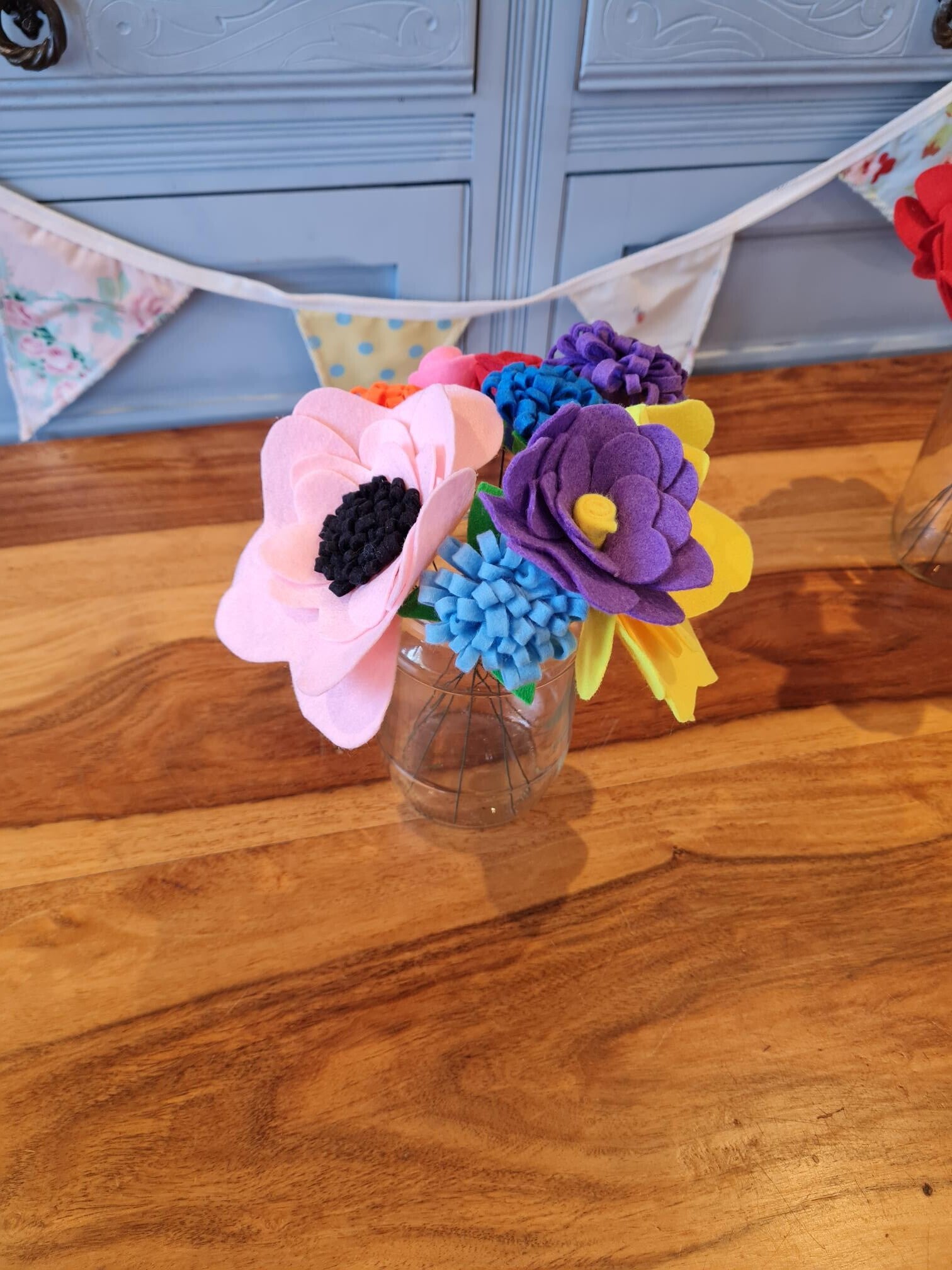 These beautiful felt flowers are handmade to order. The colours can be customised so please contact us to discuss your requirements. Each flower is assembled on a flexible stem so you can arrange them to suit your vase. Please note, vase not included.