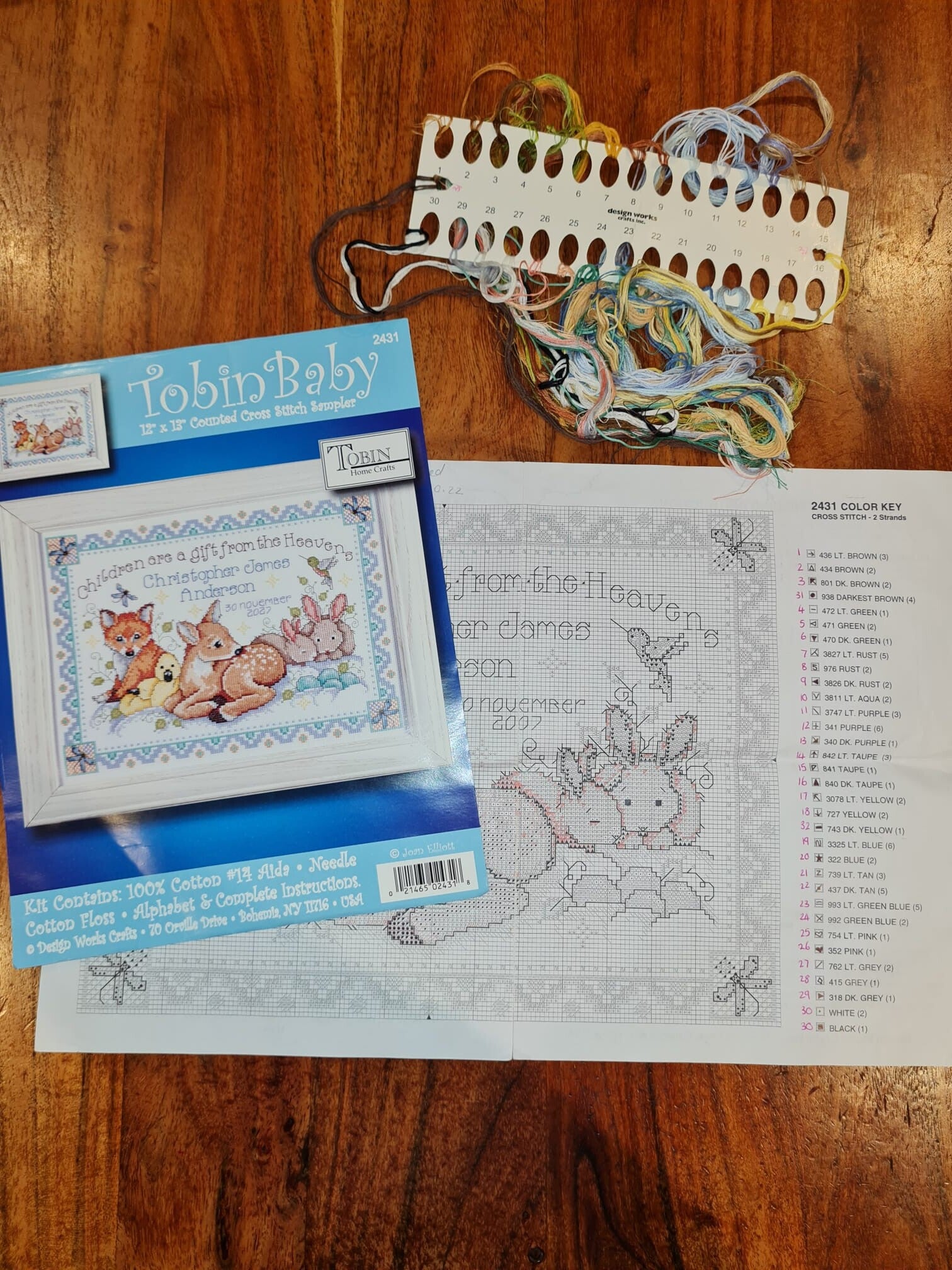 Based on 14 count aida, the finished design measures 12" x 13". This design uses full cross stitch and back stitch.