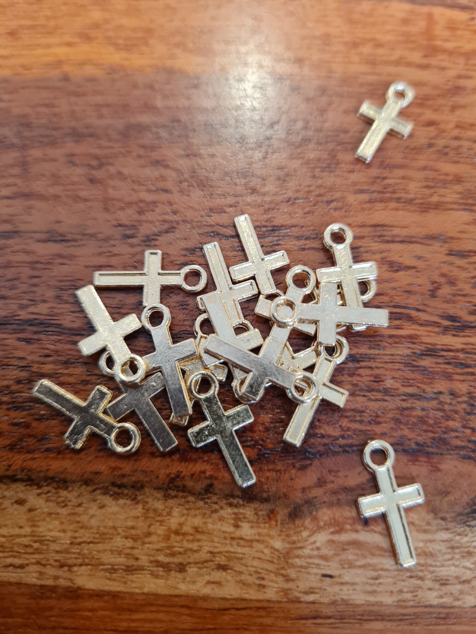 These little metal cross charms measure approximately 1.5cm x 0.8cm. Comes in a pack of 25. Available in rose gold or gold.